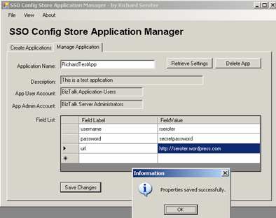 Jon Flanders did some great work with SSO for storing configuration data, and the Microsoft MSDN site also has a sample application for using SSO as a Configuration Store, but, neither gave me exactly what I wanted. I want to lower the barrier of entry for SSO since it’s such a useful way to securely store configuration data.