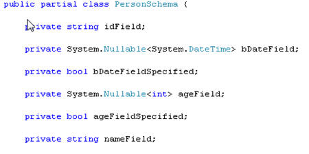 What, what, what?? I still have values present for the integer (“Age”) and datetime (“BirthDate”) but the “specified” fields are now false. What’s the ramification? Turning this object back into XML in this TEST environment results in this …