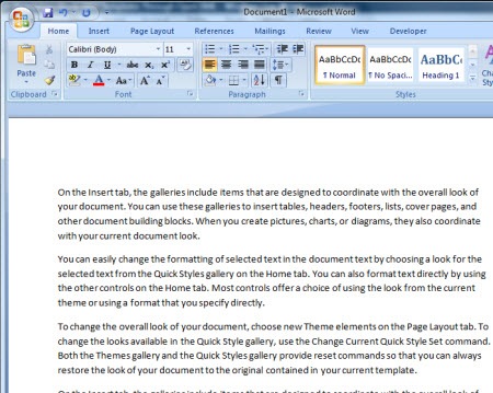 First, we need a Word 2007 document. Because I’m not feeling particular frisky today, I will fill this document with random text using the ever-useful “=rand(9)” command to make Word put 9 random paragraphs into my document.