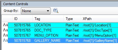 Click each node, and then drag it to the corresponding Content Control. When all four are complete, the XPath column in the Content Controls should be populated.