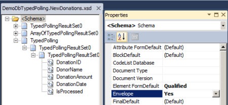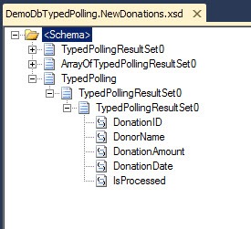 Pretty simple, eh? When the record gets debatched automatically by BizTalk in the XML receive pipeline, the resulting TypedPollingResultSet0 message(which matches a message type known by BizTalk) gets put in the MessageBox and routed around.