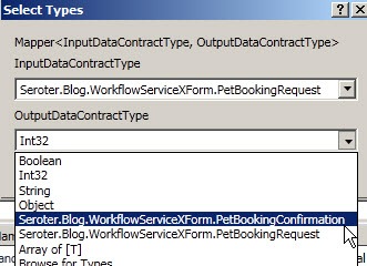 Neato. When I drag the shape onto my workflow, I’m prompted for the data types of my source and destination message. I could choose primitive types, or custom types (like I have).
