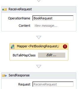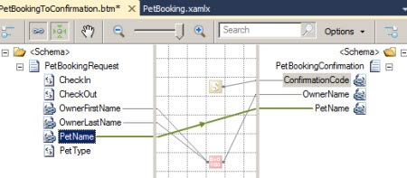 To show the standard experience (or if you don’t have BizTalk 2010 installed), I’ve put an “Assignment” shape in my workflow to take the “PetName” value from the request message and stick it into the Response message.