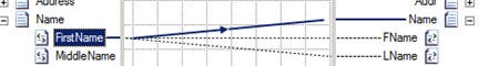 In this scenario, I was looking to see if the Mapper detected any differences based on more than just the substrings. That is, could it figure out that “FirstName” and “FName” are the same? Unfortunately, the “FirstName” field below resulted in a match to all name fields in the destination.