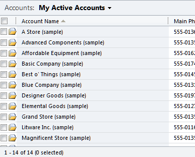 To compare results, I have 14 account records in my Dynamics CRM Online organization.