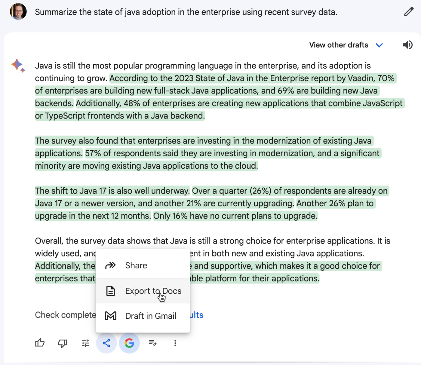 This relates to the entirety of Google’s AI investment where I might use Google Search, Bard, Workspace, and Cloud to get my work done.