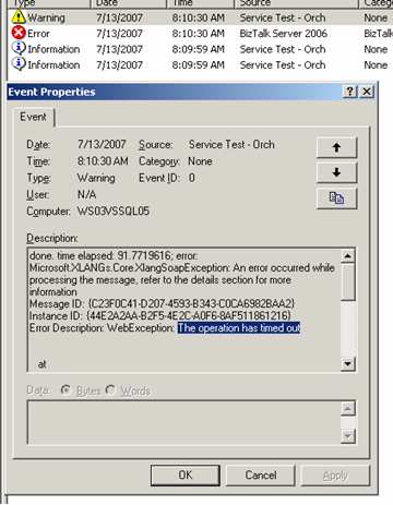 Recently, when calling web services from the BizTalk environment, we were seeing intermittent instances of the “WebException: The request was aborted: The request was canceled” error message in the application Event Log. This occurred mostly under heavy load situations, but could be duplicated even with fairly small load.