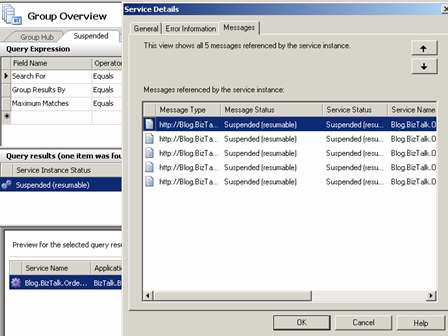 What you’re telling BizTalk is that if any message fails for this ordered delivery port, stop processing until this error can be corrected. This is useful if you’re concerned that an “insert new contact” message failed, but you expect a “modify existing customer” to be following. Clearly the “modify” message will fail unless the “insert” gets figured out. The result of this?
