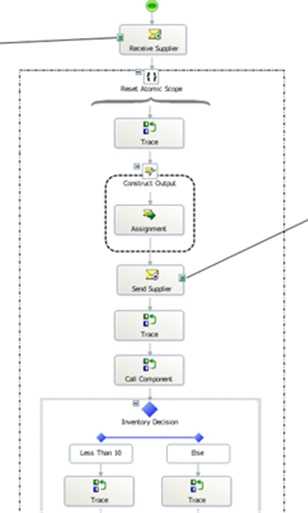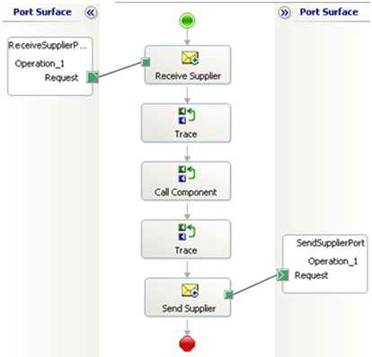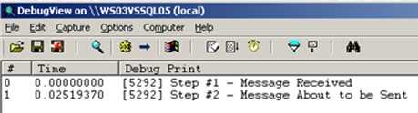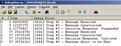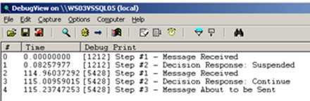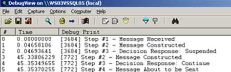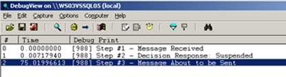 First off, I created a simple orchestration that calls out to an external .NET component. I inserted a few Expression Shapes which write trace statements out. We’ll view those statements using the Debug Viewer.