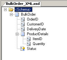 First off, an XSD schema reflecting a “BulkOrder” of a product was created in a new Visual Studio.NET BizTalk Server project.