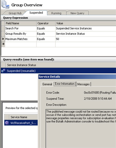 - Exception Situation #4 – No subscribers, message suspended in BizTalk