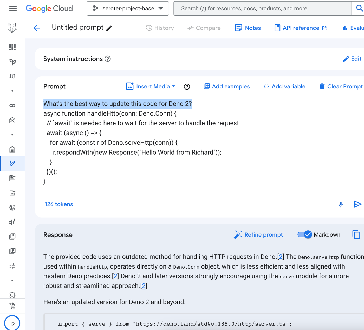 Trying to plan out your next bit of work? Google AI Studio or Vertex AI Studio can assist here too. In either service, you can pass in your backlog of features and bugs, maybe an architecture diagram or two, and even some reference PDFs, and ask for help planning out the next sprint. Pretty good!