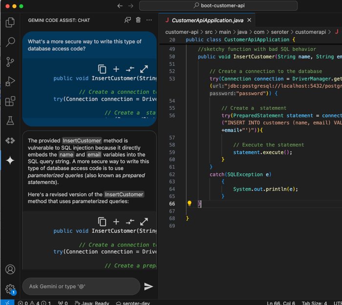 Chat for Gemini Code Assist teaches me about PostgreSQL options