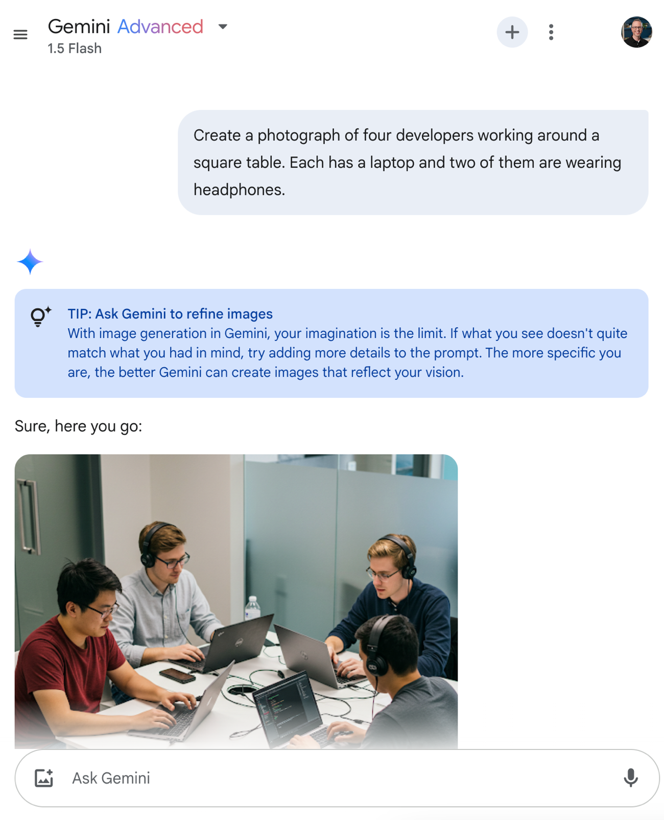 Planning your work or starting to flesh out a prototype? For free, Google AI Studio lets you interact with the latest Gemini models. Generate text, audio, or images from prompts. Produce complex codebases based on reference images or text prompts. Share your desktop and get live assistance on whatever task you’re doing. It’s pretty rad.