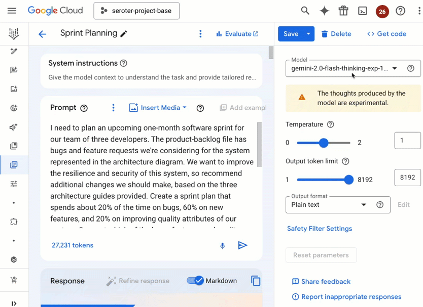 Vertex AI Studio “thinking” through a sprint plan based on multi-modal input
