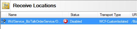 After deploying the application, I created a BizTalk receive location to pick up the event notification message. Next, I chose to import the send port configuration from the wizard-generated binding file. The send port uses a basic HTTP binding and points to the endpoint address of my custom web service.