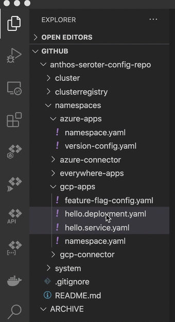This last step is basically my way of trolling the people who complain that multi-cloud apps are hard. What if I want to take the above app from GCP and move it to Azure? Does it require a four week consulting project and sacrificing a chicken? No. I just have to copy the Kubernetes deploy and service YAML files to the azure-apps directory.