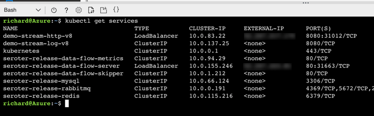 I issued a Helm command from the Azure Cloud Shell (as Helm is pre-installed there) and in moments, had SCDF deployed.