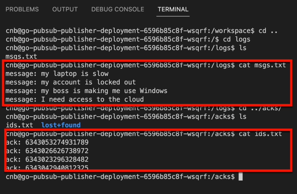The final piece of our architecture requires a queue listener. When our delivery drivers drop off a package, their system sends a message to Google Cloud Pub/Sub, our pretty remarkable messaging system. To be sure, I could trigger Cloud Run (or Cloud Functions) automatically whenever a message hits Pub/Sub. That’s a built-in capability. I don’t need to use a processor that directly pulls from the queue.