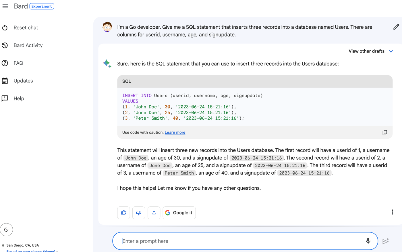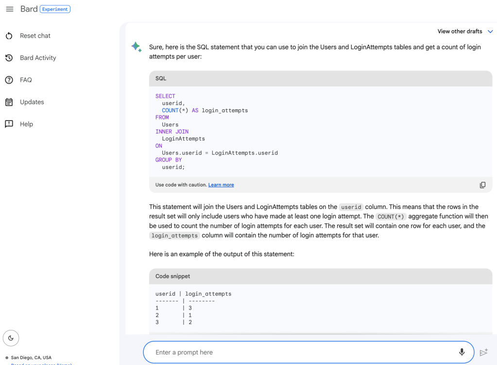 I definitely plan on using Bard for help me with SQL queries from now on.