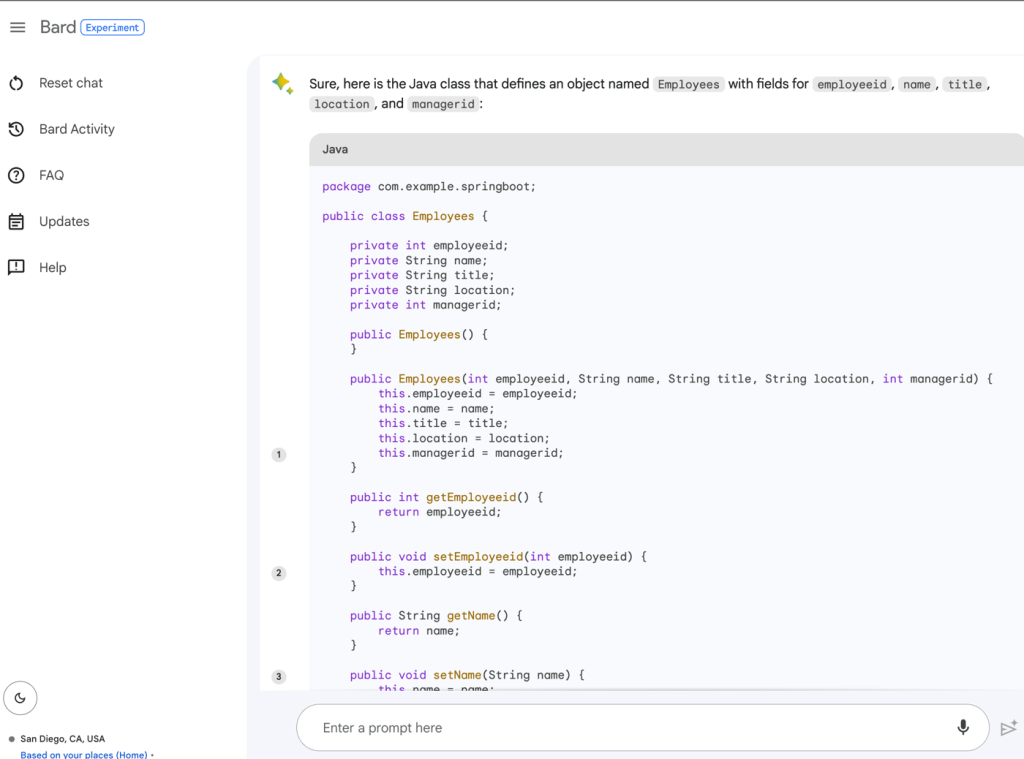 For anything but the simplest apps, I find myself creating classes to represent the objects used by my app. This isn’t hard work, but it’s tedious at times. I’d rather not plow through a series of getters and setters for private member variables, or setup one or more constructors. Let’s see how Bard does.