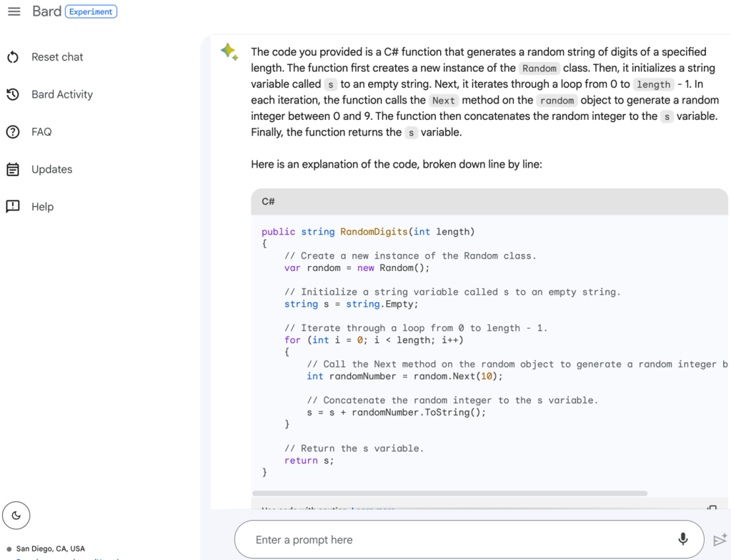 If you’re learning a new language, consider using generative AI to explain code snippets to you. I acknowledge that I’ve had mixed luck pointing Bard at a code file or repo and getting a perfect explanation. I sometimes get hallucinations (e.g. refer to files to methods that don’t exist), but I expect this functionality to get better quickly.