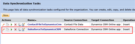 In my list of Data Synchronization Tasks list, I can see my new task. The green Run Now button will trigger the task.
